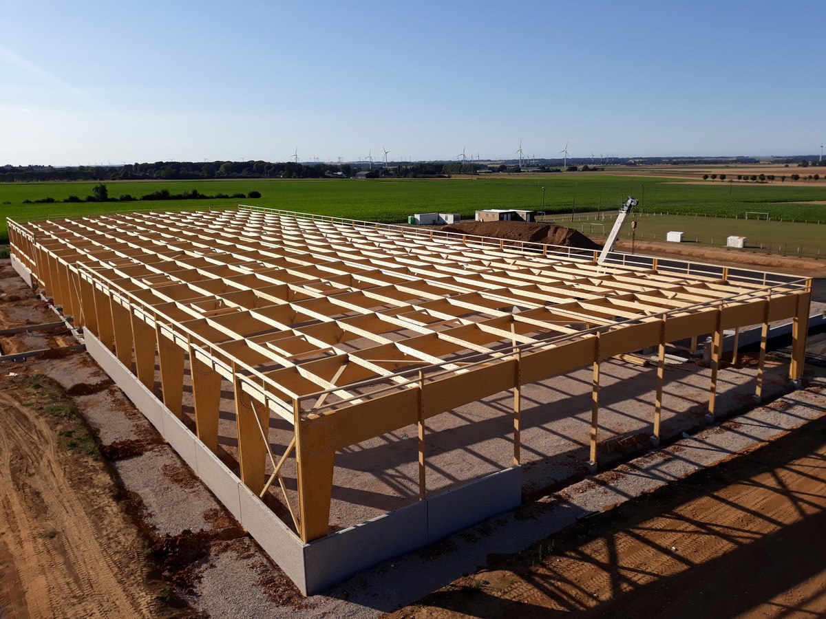 Bâtiment commercial et industriel en structure bois lamellé collé
